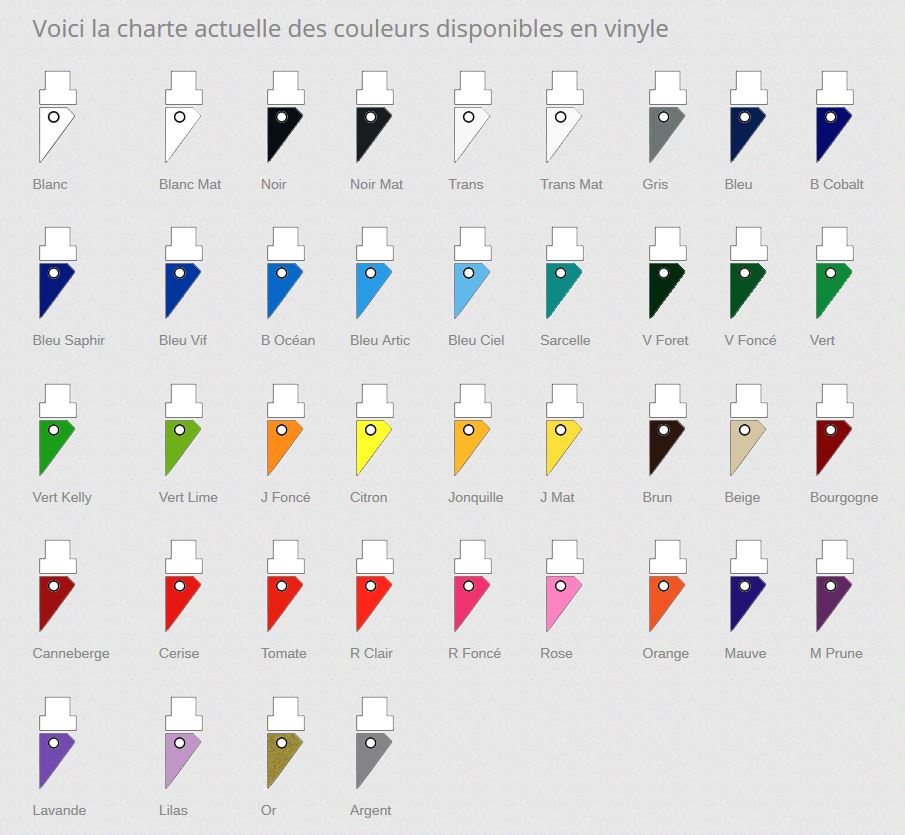 Nous avons une grande variété de couleurs disponible. Toutes les couleurs sont offerts en ligne, mais peuvent être commandés grâce à votre soutien par courriel. Nous pouvons réduire ou agrandir ces autocollants dans la plupart des cas. Si vous avez des tailles spécifiques s'il vous plaît contactez-nous et nous pouvons organiser pour l'adapter à vos spécifications.